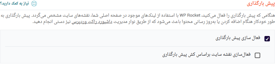 اگر گزینه “فعال‌سازی نقشه سایت براساس کش پیش بارگذاری” هم فعال کنید. نقشه سایت هایی که به طور خودکار شناسایی شده‌اند (در صورت استفاده از افزونه‌های سئو Yoast Seo Premium، All-in-One) یا در زمینه متن مشخص شده‌اند  پیش بارگذاری خواهند شد.