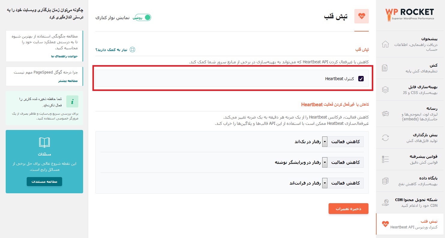 •  زمانی که تغییرات اعمال شده در WP Rocket را ذخیره می‌کنید.