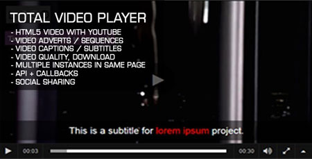 Total Video Player نام اسکریپتی تجاری می باشد که با استفاده از آن قادر هستید یک Video Player در وب سایت خود ایجاد کنید. این اجرا کننده ویدئو با امکاناتی خاص و فوق العاده می تواند یک انتخاب مناسب برای شما باشد. از قابلیت های کلیدی این اسکریپت می توان به امکان اجرای ویدئو در چندین کیفیت مختلف ، امکان پخش زیر نویس فیلم ها ، قابلیت قرار دادن لوگو در ویدئو به صورت اتوماتیک ، امکان پخش تبلیغ در ابتدای ویدئو ، قابلیت دانلود ویدئو توسط کاربران ، اجرا کننده HTML5 برای مرورگرهای مدرن و Flash برای مرورگرهای قدیمی اشاره نمود. امکانات کلی این اسکریپت را نام می بریم.