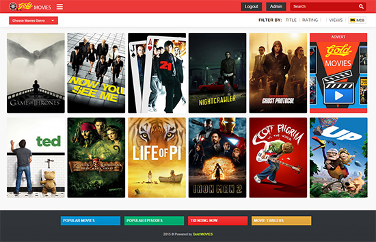 Gold MOVIES نام اسکریپتی تجاری می باشد که به وسیله آن قادر هستید اقدام به ایجاد یک وب سایت اشتراک گذاری فیلم و سریال به صورت آنلاین کنید. از قابلیت های کلیدی این اسکریپت می توان به قابلیت جستجو در میان فیلم ها ، قابلیت ثبت بی نهایت فیلم ، قابلیت قراردادن توضیحات ، تصویر ، لینک ویدئو ، امتیاز IMDB و… اشاره نمود. همچنین این سیستم دارای قابلیت تعریف دسته بندی فیلم ها ، سئوی فوق العاده ، بخش تبلیغات و مدیریت کاربرپسند می باشد. امکانات کامل را نام می بریم
