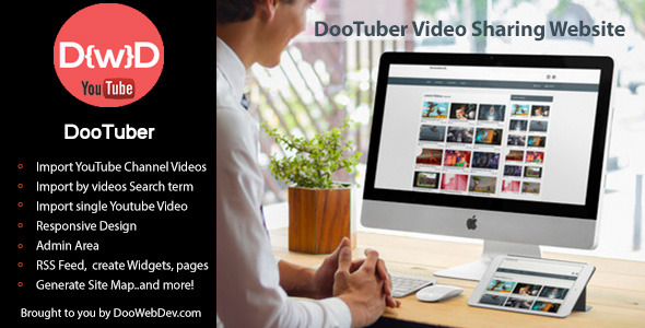 اسکریپت DooTuber طراحی ساده و زیبایی دارد و به عنوان یک سیستم انحصارا در زمینه اشتراک ویدئو می‌باشد که کاربران می توانند در آن ثبت نام کنند و به اشتراک ویدئو‌های خود بپردازند. DooTuber با یوتیوب هم همگام است و میتوانید ویدئوهای این سایت را در سیستم خود منتشر کنید. از ویژگی‌های برجسته این اسکریپت به پشتیبانی از زبان فارسی آن می باشد .