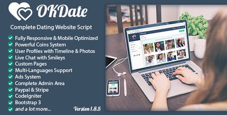 OKDate نام یک اسکریپت تجاری است برای راه اندازی یک شبکه بسیار حرفه ای دوست یابی با امکانات بسیار زیاد است . از امکانات این اسکریپت می توان به واکنش گرا بودن سیستم قابلیت چت زنده بین کاربران , طراحی فلت , قابلیت آپلود تصاویر و شخصی سازی پروفایل کاربری , قابلیت گزارش دادن یا بلوک کردن یوزر ها و قابلیت چند زبانه بودن سیستم نیز اشاره کرد. در ادامه برخی دیگر از امکانات سیستم مدیریتی و بخش کاربری را نام خواهیم برد.