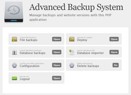 Advanced Backup System یک اسکریپت به زبان PHP می باشد که به شما کمک میکند تا به مدیریت نسخه های پشتیبان (backup) سایت خود بپردازید! شما در این سیستم میتوانید فایل های پشتیبان خود را حذف کنید یا یک نسخه پشتیبان جدید دریافت نمایید. همچنین این سیستم دارای تنظیمات مختلفی نیز می باشد.