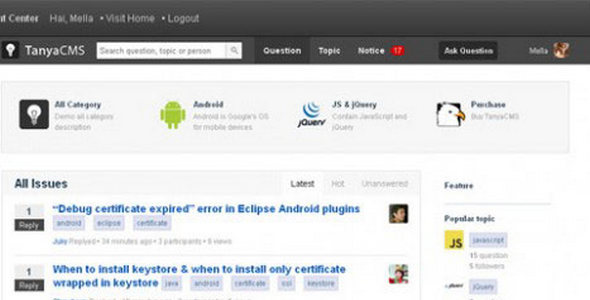 TanyaCMS نام یک اسکریپت تجاری می باشد که شما را قادر می سازد تا یک وب سایت پرسش و پاسخ ایجاد کنید. این اسکریپت دارای قابلیت هایی نظیر ورود و عضویت کاربران ، قابلیت امتیاز دهی به پاسخ ها ، سیستم برچسب ها، سئوی مناسب لینک ها، دسته بندی ها و جستجوی پیشرفته می باشد. همچنین این سیستم دارای سیستم اطلاع رسانی پیشرفته به کاربر می باشد. امکانات کلی این سیستم را نام می بریم