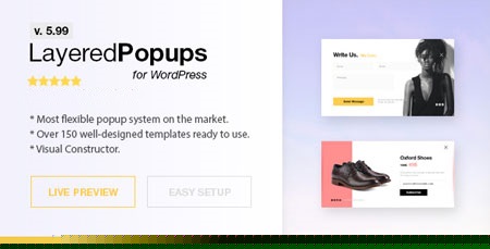 Layered Popups نام یک افزونه تجاری برای وردپرس می باشد که به وسیله آن می توانید به راحتی اقدام به ایجاد پاپ آپ های حرفه ای در وب سایت خود کنید. این افزونه یکی از پر فروش ترین و محبوب ترین پلاگین ها در زمینه ایجاد پاپ آپ وردپرس می باشد. از قابلیت های کلیدی این افزونه می توان به نمایش پاپ آپ در هنگام بارگذاری صفحه ، نمایش پا آپ در هنگام اسکرول کردن ، نمایش پاپ آپ در هنگام خروج از وب سایت اشاره نمود. یکی از قابلیت های کلیدی این افزونه می توان به وجود بیش از 150 قالب پیش ساخته برای استفاده ، قابلیت قرار دادن پاپ آپ در سایت های غیر وردپرسی و همچنین شناسایی نرم افزار های Ad Blocker اشاره نمود