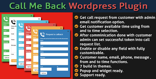 Call Me Back نام افزونه کاربردی و تجاری وردپرس میباشد که به وسیله آن میتوانید یک بخش درخواست تماس برای مشتریان و کاربران وبسایت خود ایجاد کنید. این بخش به کاربران این امکان را میدهد تا بتوانند با استفاده از فرم موجود، اطلاعات تماس خود را برای شما ارسال کرده و از این طریق، درخواست تماس از سوی شما را ارسال کنند. با ارسال هر درخواست، این افزونه از طریق ایمیل به شما اطلاع رسانی خواهد کرد.
