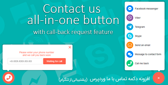 Contact Us All-in-One نام افزونه کاربردی وردپرس می‌باشد که به وسیله آن می‌توانید یک دکمه تماس با ما به صورت شناور طراحی کرده و آن را در وبسایت خود نمایش دهید. این افزونه به شما این امکان را می‌دهد تا بتوانید به وسیله آن ، حساب های کاربری خود را در شبکه های اجتماعی نمایش داده و از طریق با کاربران خود در تماس باشید. این افزونه از پیام رسان های مختلفی مانند: تلگرام، فیسبوک مسنجر، واتس آپ ، وایبر، اسکایپ پشتیبانی کرده و با نمایش لوگو آن ها کاربران می‌توانند مستقیما از طریق این پیام رسان ها با شما در تماس باشند.
