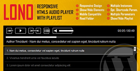 افزونه پخش کننده صدا Lono دارای طراحی کامل واکنش گرا بوده و از دستگاه های همراه مانند موبایل و تبلت به صورت کامل پشتیبانی میکند. کاربران انواع موبایل مانند اپل میتوانند به آسانی از امکانات این پخش کننده صوتی استفاده کنند. جهت نمایش این پخش کننده صدا میتوانید از کدهای کوتاه آن استفاده کرده و در جای مناسب قرار دهید. این افزونه دارای تنظیمات مختلفی همچون:تکرار پخش صدا، پخش خودکار، و امکانات مختلف دیگری میباشد که میتوانید آنها را فعال و یا غیرفعال کنید.