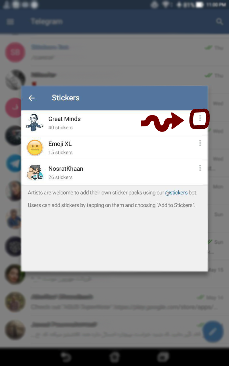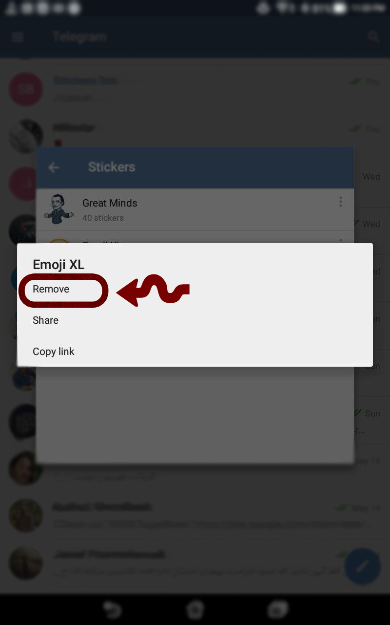 حذف استیکرهای نصب شده در تلگرام