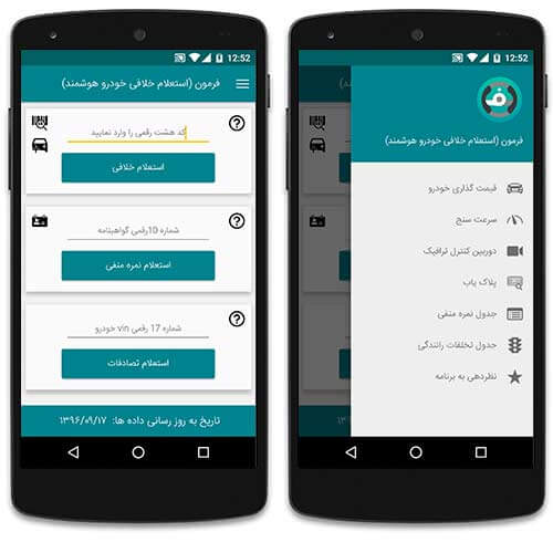 وظیفه اصلی برنامه فوق، استعلام خلافی وسیله نقلیه و امکان پرداخت آن به صورت آنلاین میباشد که مراحل این کار با اتصال به سایت راهور ناجا انجام میشود. در صفحه اصلی فرمون میتوانید ۳ ابزار کلیدی آن را ببینید که عبارتند از: