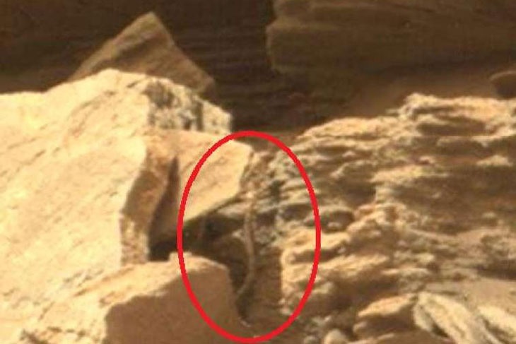 شکارچیان موجودات فضایی این بار مدعی شده‌اند در یکی از تصاویری که ناسا از سطح مریخ منتشر کرده است، موجودی شبیه مار یافته‌اند که در حال خزیدن لابه‌لای صخره‌های مریخ است..