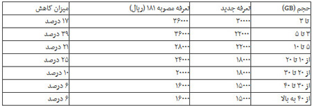 در حوزه اینترنت موبایل نیز در گذشته کاربر به ازای هر کیلوبایت اینترنت باید نیم ریال پرداخت میکرد که با توجه به تعرفه جدید، این مبلغ به ازای هر کیلوبایت به ۴ دهم ریال کاهش یافت.