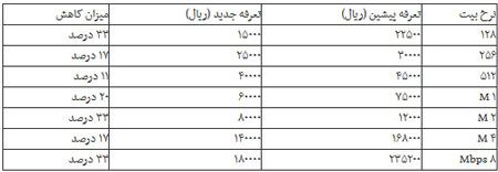 این نرخها با افزایش پهنای باند و ظرفیت واگذار شده کاهش بیشتری نیز خواهد یافت.