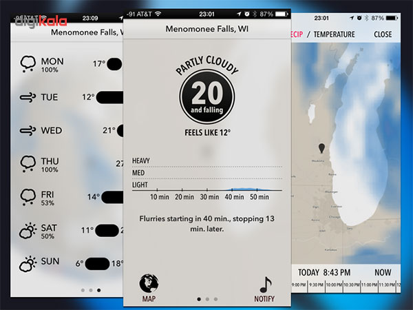 کاربران آیفون با استفاده از یک برنامه پیشفرض روی دستگاه خود، پیشبینی وضعیت آب و هوا را مشاهده میکنند. البته اطلاعات پیشبینی شده در این برنامه اصلا دقیق نیست. به همین دلیل توسعهدهندگان دایما در حال آمادهسازی برنامههای جدید با دقت بالا هستند.