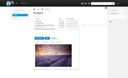 Mollify نام اسکریپتی متن باز و رایگان می باشد که به وسیله آن قادر هستید به مدیریت فایل های خود بپردازید. شما با نصب این اسکریپت قادر هستید براحتی پوشه ها و فایل های خود را مدیریت کنید و براحتی آن ها را به اشتراک بگذارید و دانلود کنید. از قابلیت های این اسکریپت می توان به تعریف کاربران مختلف با سطوح دسترسی جداگانه ، قابلیت جستجو در بین فایل ها و پوشه ها ، قابلیت مشاهده پیش نمایش (فایل های تصویری) ، قابلیت دریافت فایل ها به صورت فشرده ، قابلیت آپلود فایل های فشرده و Extract کردن آن ها ، قابلیت ویرایش ، تغییر نام ، انتقال و حذف فایل ها اشاره نمود.
