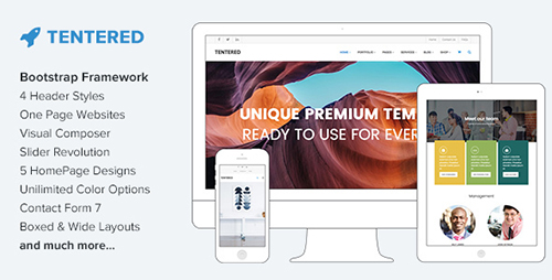Tentered نام پوسته کاربردی و حرفه ای وردپرس می‌باشد که به وسیله آن می‌توانید یک وبسایت برای موضوعات مختلف راه اندازی کنید. این پوسته دارای دموهای زیبا و منحصر به فردی نیز می‌باشد که به آسانی می‌توانید آن ها را بر روی وبسایت خود نصب کنید. از این پوسته می‌توانید در موضوعات مختلفی همچون: شرکتی، خدماتی، نمونه کارها، گالری، فروشگاهی و موضوعات دیگر استفاده کنید. همچنین برای نصب دموهای تنها یک کلیک نیاز است و به راحتی نصب خواهند شد.