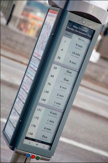 پیشرفت در سیستم حملونقل عمومی امروزه بسیار رواج یافته است، به طوریکه در لندن با استفاده از تکنولوژی صفحه نمایش دیجیتالی جوهر الکترونیکی به مسافران خدمات ارائه میدهد. این اطلاعات شامل اطلاعات سفر از جمله نقشهها، جدول زمانی و زمان ورود بار است.