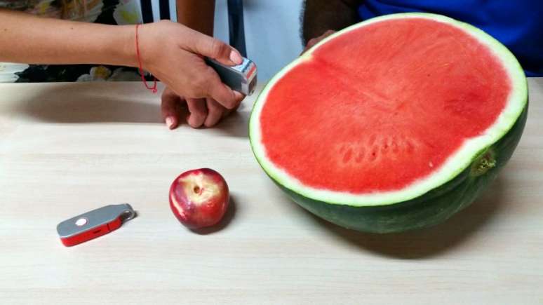 گجت جمع و جور و بامزه ای که در تصویر می بینید نامش SCiO است و می تواند به شما بگوید غذایی که می خورید از چه تشکیل شده و چه میزان کالری دارد، نام و ترکیب قرصتان چیست، آیا گیاه شما به آب نیاز دارد و یا حتی هندوانه شما رسیده است یا خیر؟! تنها کافی است آن را در مقابل ماده غذایی یا شیء مورد نظرتان بگیرید تا آنچه را می خواهید به شما بگوید. نحوه ی کار این گجت بر مبنای طیف سنجی مولکولی است و با تاباندن نور مادون قرمز بر روی هدف خود، مولکول های آن را تحریک نموده و به اصطلاح اثر انگشت مولکولی (molecular fingerprint) آن را برداشت می کند. در حال حاضر دامنه تشخیص SCiO به خوراکی ها، دارو و گیاهان محدود می شود و شرکت پشت این پروژه Consumer Physics قصد دارد این دامنه را به تمام مواد موجود روی کره زمین گسترش دهد!