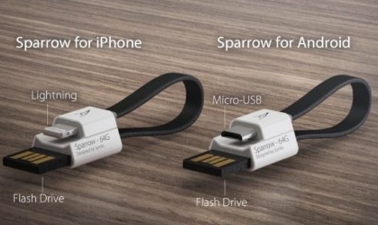 گجت Symlis Sparrow که به شکل آویز جاسوئیچی طراحی شده است متشکل از یک شارژر و حافظه فلش است تا کمترین فضا را در جیب شما اشغال کند و همیشه همراه شما باشد.